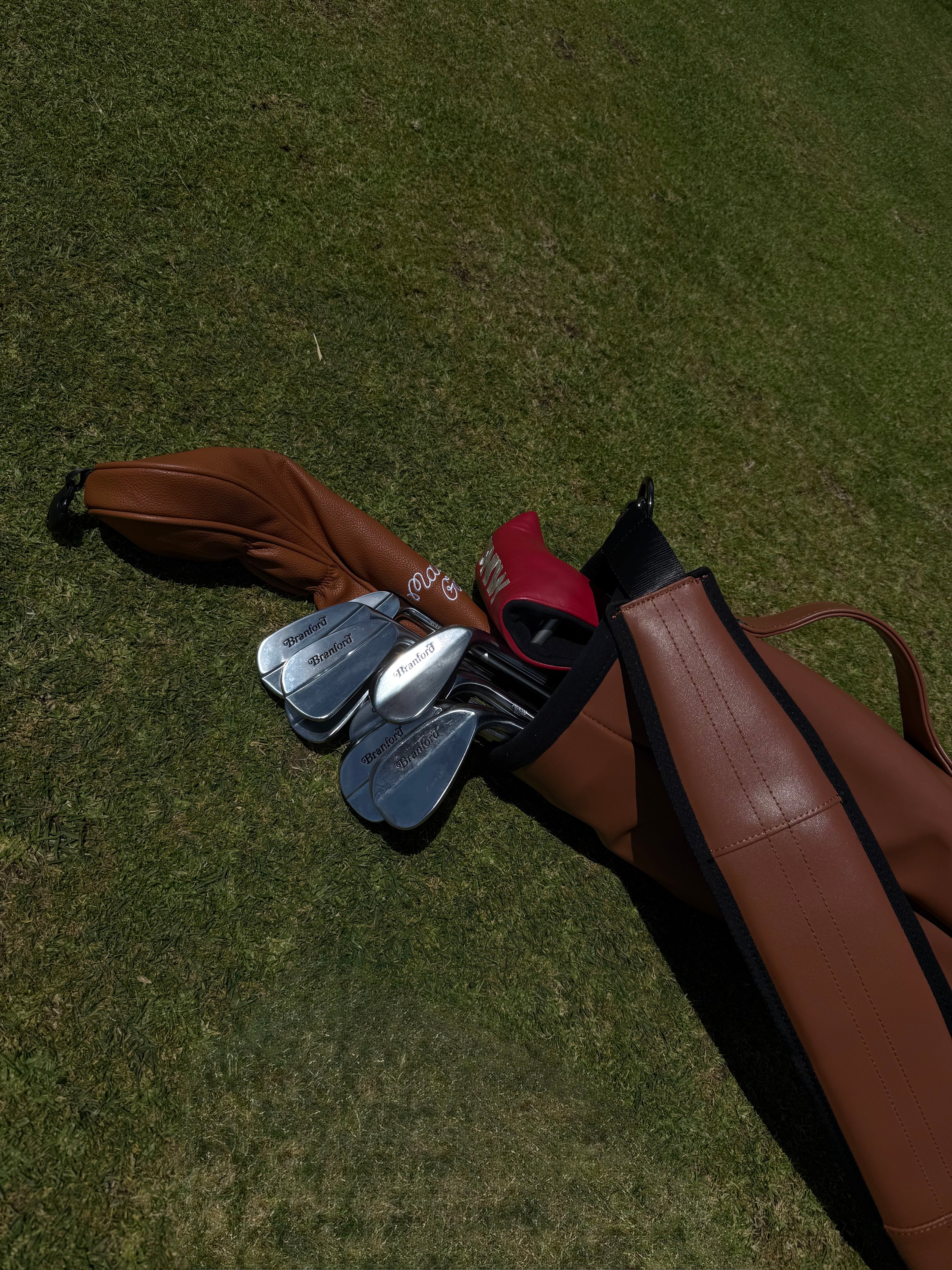 Our genuine leather sunday bags are the perfect bag for those chill afternoon rounds